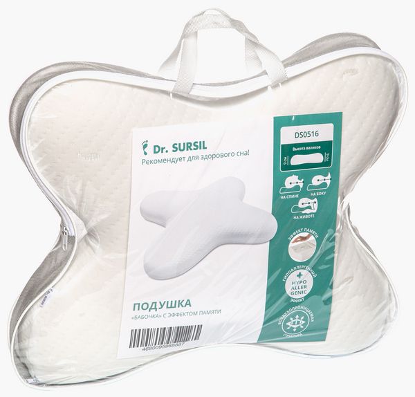 Подушка с эффектом памяти Dr.SURSIL "бабочка", высотой 9см, производится из современного гипоаллергенного материала «Memory Foam» (вязкоэластичной полимерной пены).